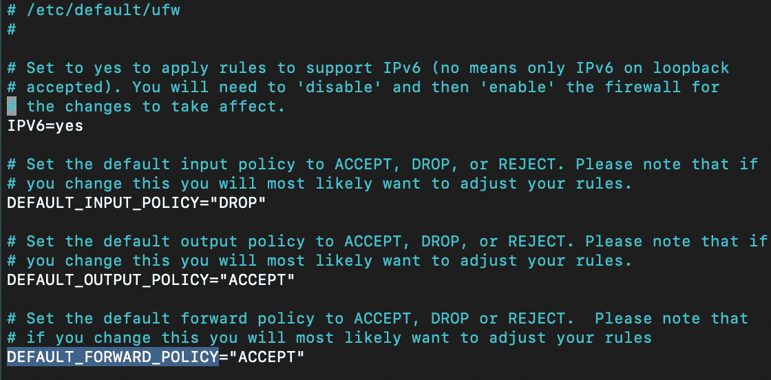 sudo nano /etc/default/ufw